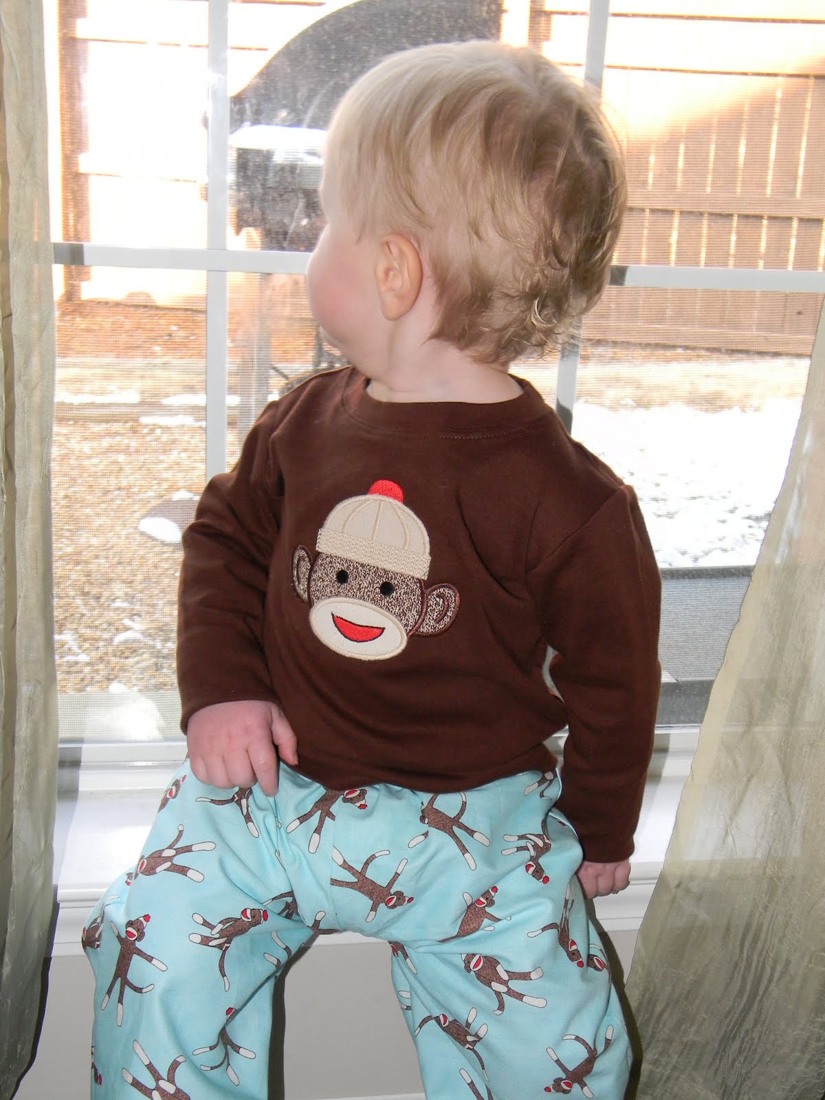 Leland is growing like a little weed! At his check-up, he weighed 26 lbs 12oz (50th percentile) and was 34 3/8 inches tall (95th percentile). His doctor said that he is on schedule to be at least 6 ft 2"! I have always known that he would be tall and have big feet. He will take after my Moms side of the family in this area! He is moving into 24m clothes. The 18m shirts and pants are a little short, but the 24m shirts and pants are too long and big in the waist, so unfortunately he is in between sizes and it is kind of aggravating when baby clothes are not made with draw strings!!